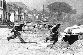 Bung Tomo di Surabaya, salah satu pemimpin revolusioner Indonesia yang paling dihormati. Foto terkenal ini bagi banyak orang yang terlibat dalam Revolusi Nasional Indonesia mewakili jiwa perjuangan revolusi utama Indonesia saat itu.[5]